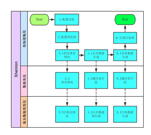 简单来说 shannon 分了 3 层。 最底层是基本数据类型层。 负责字段实例化,定义并实现了 shannon 支持的所有数据类型。例如,随机,枚举,主键,unique key,控制分布,大小,范围等等。