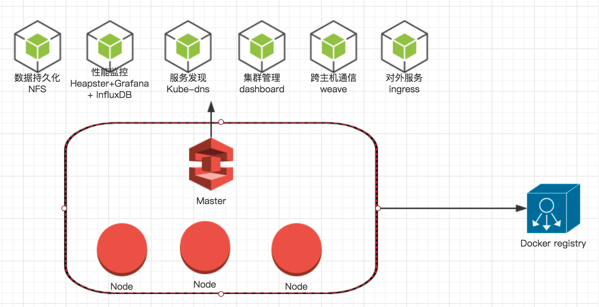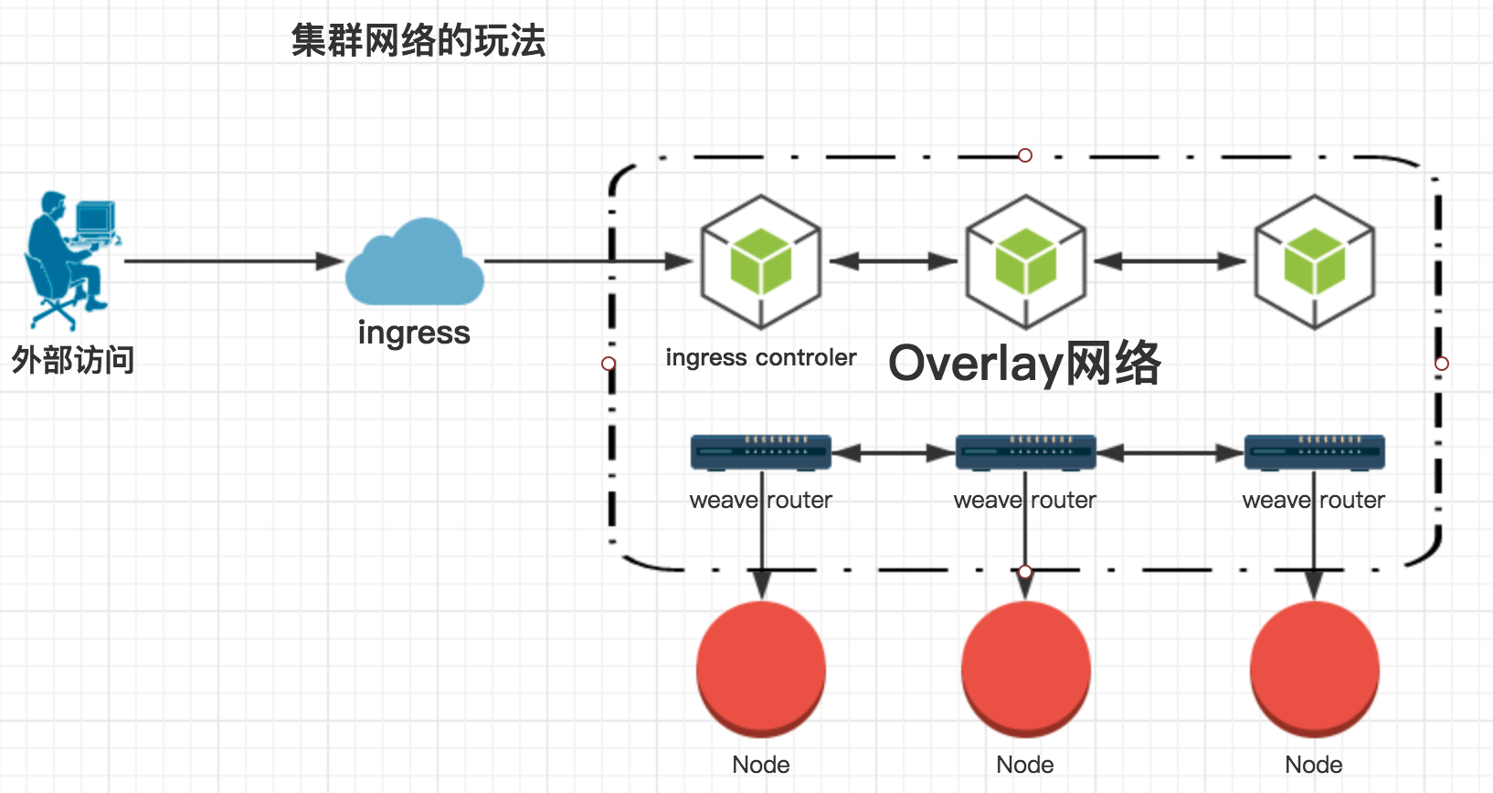 我们知道每个 docker 宿主机都会自己维护一个私有网络。 如果想让容器跨主机通讯或者外部访问容器。一般就是通过三种方式: 端口映射,路由规则以及 overlay 网络。 我们选择在 k8s 中引入的 overlay 网络是 weave,以解决夸主机通信问题。 安装 kube-dns 实现服务发现。 之后为了能让外部访问容器服务, 使用了 k8s 提供的 ingress 机制来实现。 这个 ingress 网络其实就是在集群中启动一个容器,这个容器既能访问容器网络的同是还监听了宿主机的 80 端口。 容器里是一个 nginx,它会负责帮忙转发请求。 nginx 负责转发的有 servicename 和 path,这里我们是无法使用路径进行转发的。 所以我们在公司内部的 DNS 上做了泛域名解析。 所有 testenv 为后缀的域名都会解析成集群的 master 节点的 ip。 这样我们的请求就能命中 nginx 中固定的 servicename 并做转发了。通过这种机制我们就可以很方面的访问容器提供的服务。当然 ingress 的缺点是暂时还无法做 4 层转发。如果要访问 4 层协议的服务暂时还是只能暴露 node port。