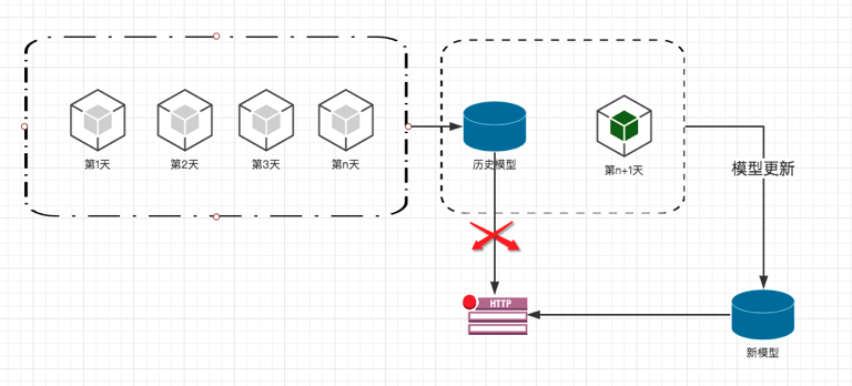 几乎所有的人工智能服务都必须要支持自学习场景。就像阿尔法狗一样,它输了一局,就会从输的这一局中学习到经验,以后他就不会那么下了,这也是机器学习恐怖的地方,它会变的越来越无懈可击,以前人类还能赢上一局,但是未来可能人类再也赢不了阿尔法狗了。 做法就是我们的数据每天都是在更新的,用户行为也是一直在变化的。所以我们的模型要有从最新的数据中进行学习的能力。上面是常见的自学习场景流程图。假如我们用历史上 n 天的数据训练出一个模型并发布成了一个预测的服务。 那么到了隔天的时候。我们抛弃之前第一天的数据,使用第二天到第 n+1 天的数据重新训练一个模型并代替之前的模型发布一个预测服务。这样不停的循环,每一天都收集到最新的数据参与模型训练。 这时候大家应该明白该测试什么了。每天收集到的新数据,就是测试重点。就是我们刚才说的第一种测试思路,使用 spark,Hbase 这些技术,根据业务指定规则,扫描这些数据。一旦有异常就要报警。
