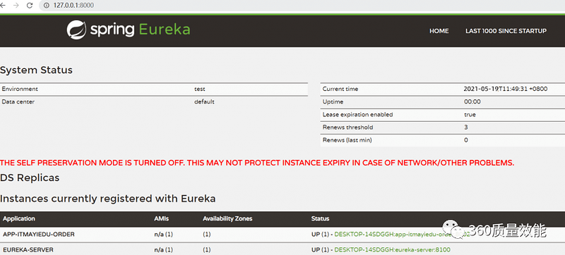 ### 3台就需要让3台服务相互注册,用逗号分隔。defaultZone: http://127.0.0.1:8100/eureka/,http://127.0.0.1:xxxx/eureka/
