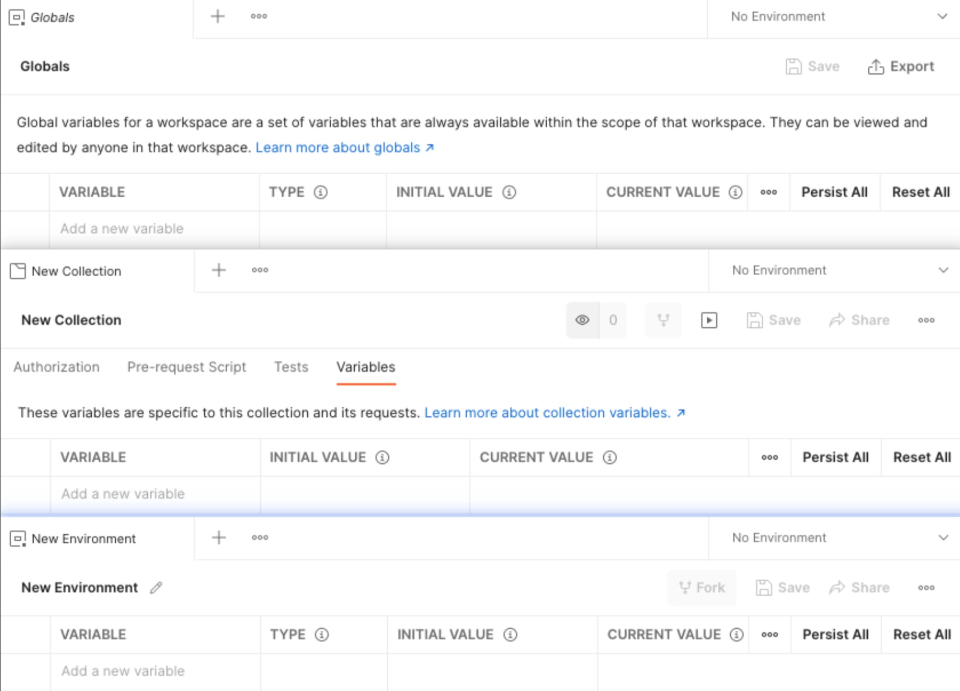 - 优先级从高至低为:Data → Enviroment → Collection → Global → Local