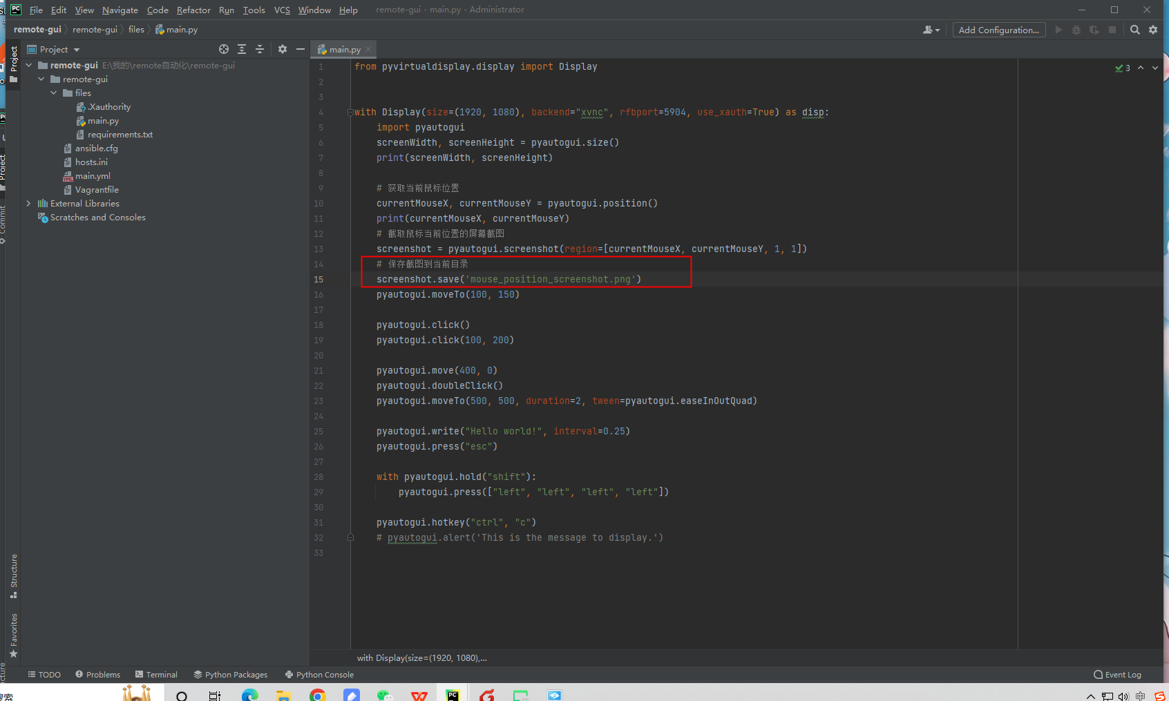 本地是可以的,就是远程不行,网上说的意思是pyautogui需要gui的权限,但是我们远程使用的都是ssh,是没有gui访问权限的