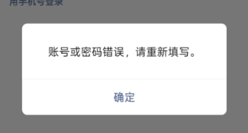 2、 手机号+密码登录,输入密码错误,弹窗正常(如下图);输入密码正确,正常登录