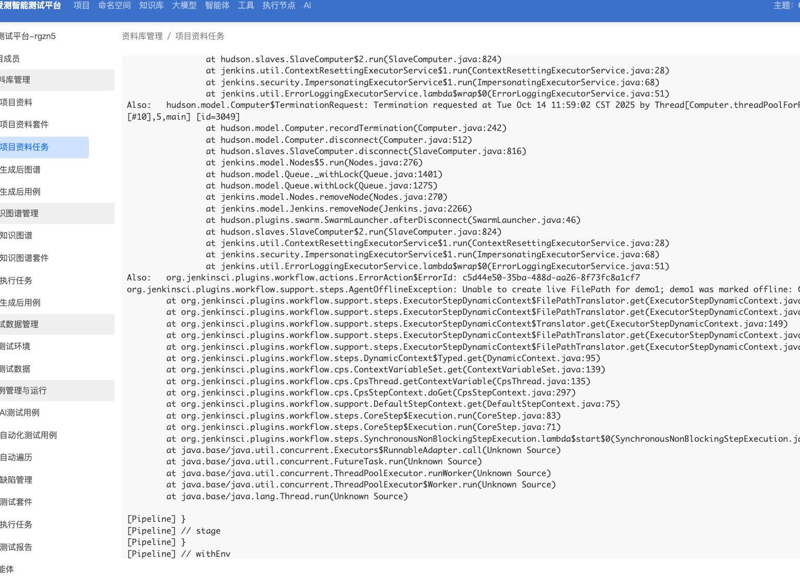 执行任务时,你本地的节点是不是关掉了,看日志是无法连接demo1 这个节点