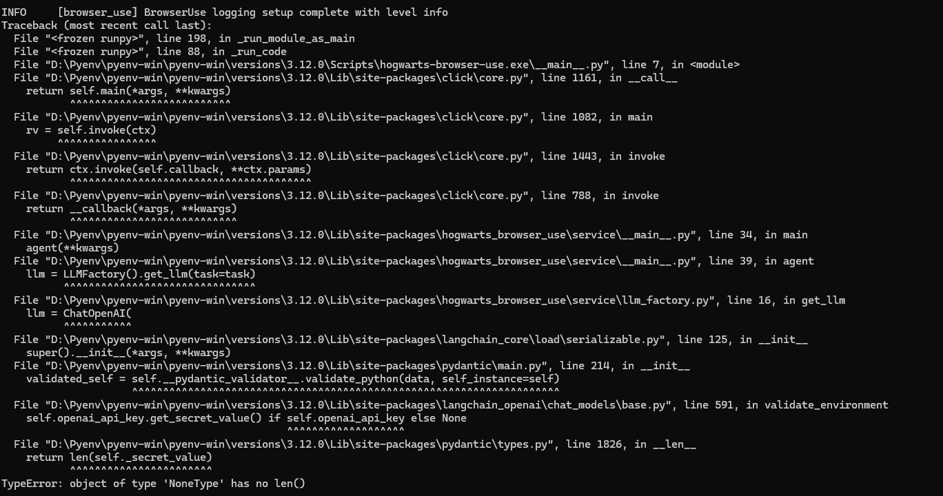 File “D:\Pyenv\pyenv-win\pyenv-win\versions\3.12.0\Lib\site-packages\hogwarts_browser_use\service\llm_factory.py”, line 16, in get_llm