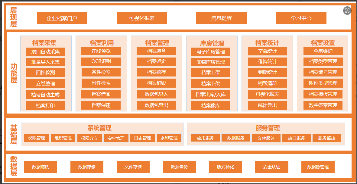 XX电子会计档案系统可以和业务系统打通,并建立业务单据的联动关系,提供档案的采集、整理、移交、保管、利用和鉴定销毁等全生命周期的管理能力。