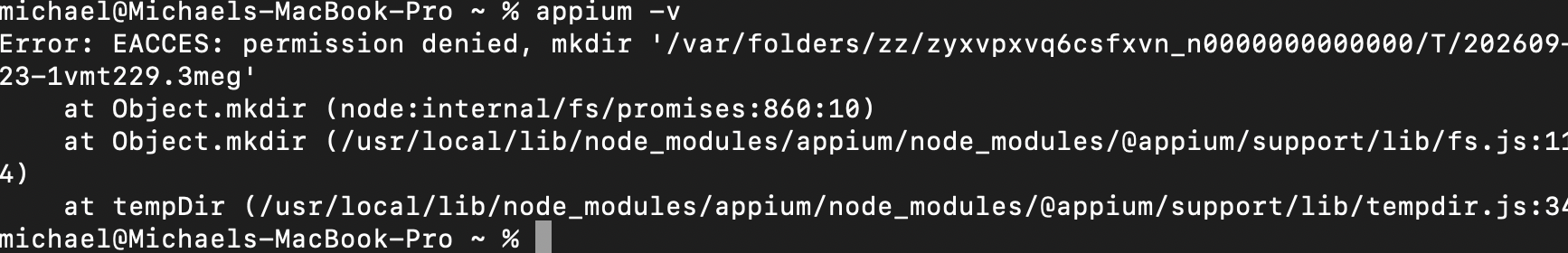 可能是权限的问题,所以加了sudo解决了。但是查看appium -v,继续报错,